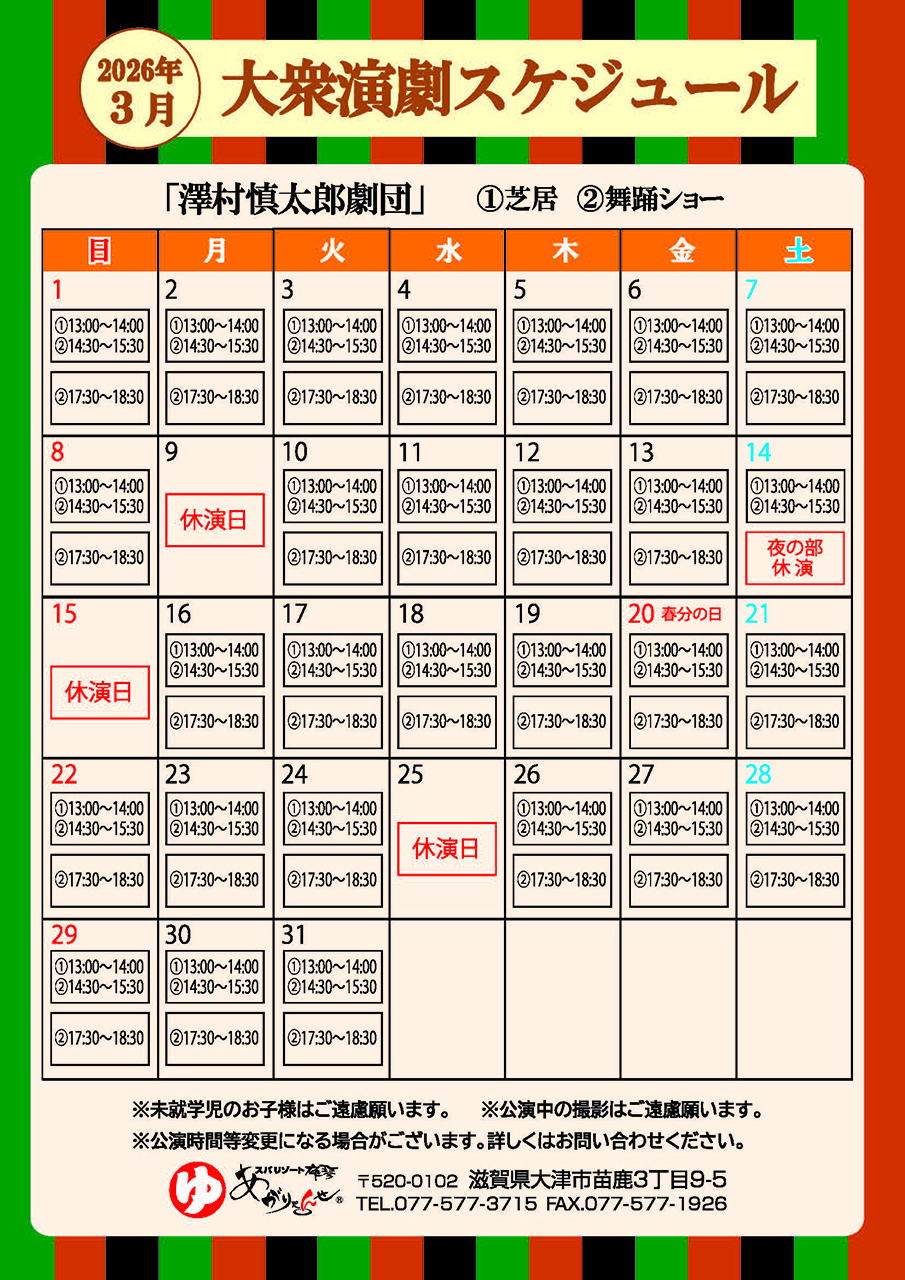 3月「大衆演劇スケジュール」のお知らせ