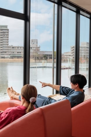 ご入館中の方は無料でご利用いただけるデラックスマッサージチェアを約50台設置。琵琶湖を眺めながらご利用いただけます。